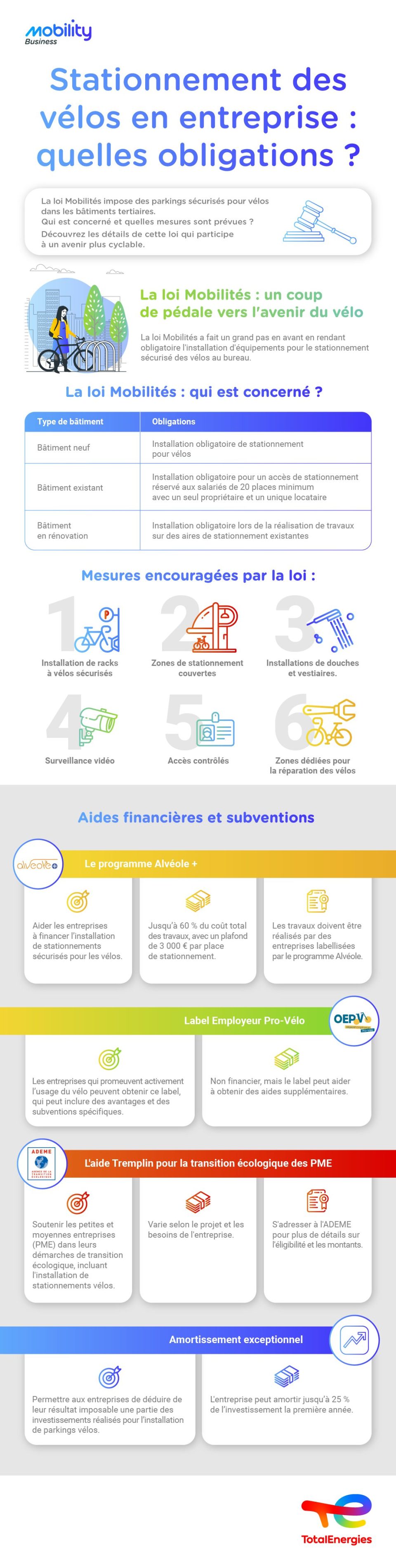 loi Mobilités impose l'installation d'infrastructures pour le stationnement sécurisé des vélos dans les bâtiments tertiaires. Les obligations varient selon le type de bâtiment, comme le précisent les