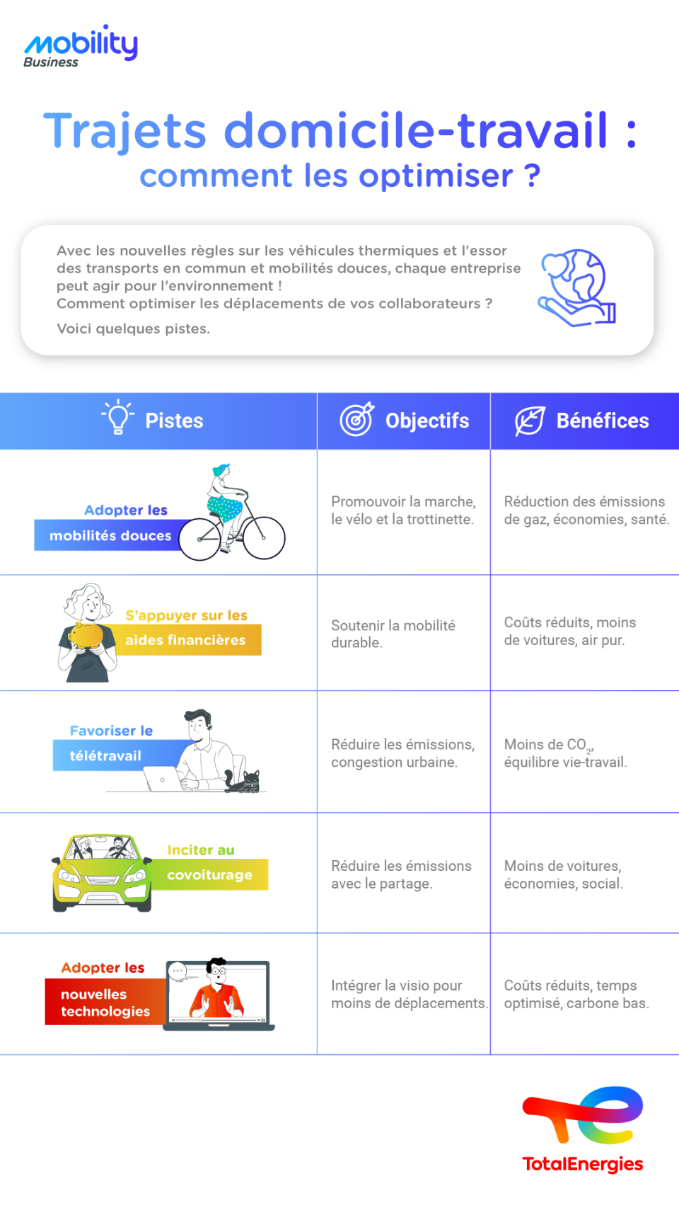 En partageant les trajets avec d'autres personnes, les employés peuvent diviser les coûts et réduire l'impact environnemental de leurs déplacements. En encourageant cette pratique, les entreprises contribuent à réduire la congestion routière et à améliorer la qualité de l'air dans les zones urbaines.